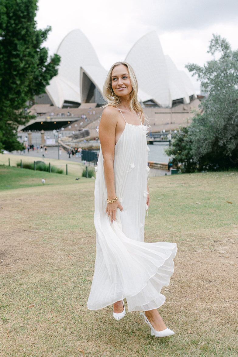 Color selection becomes crucial near water. Soft pastels like blush pink, sea glass green, or cream create stunning contrast against blue water and sandy shores. Our Isla 3D Floral Midi Dress combines all of these in one floaty, ethereal dress, and it's available in two colors (cream and sea glass) that both work well for a beach photoshoot. Coral and peach tones can also complement golden hour lighting that photographers often prefer for beach sessions. Avoid stark white, which can appear washed out against bright sand and water reflections.