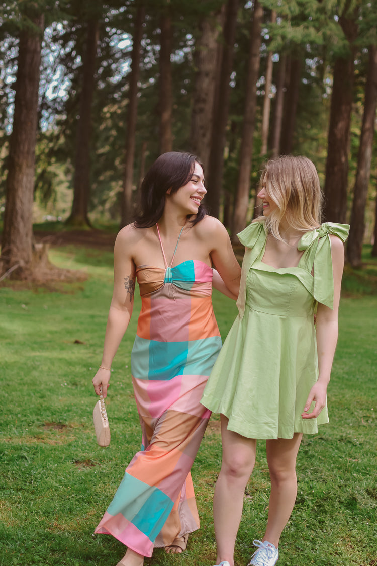 Our bestselling style is now available in a new color for summer!  The Walking Down the Aisle Lime Mini Dress is the summer "it girl dress."  Perfect for a summer date night or weekend getaway, this simple green mini dress's showstopping element is its oversized bow tie shoulders.  Hits mid-thigh, but its adjustable shoulder ties give you the opportunity to make the dress a little shorter or longer.
