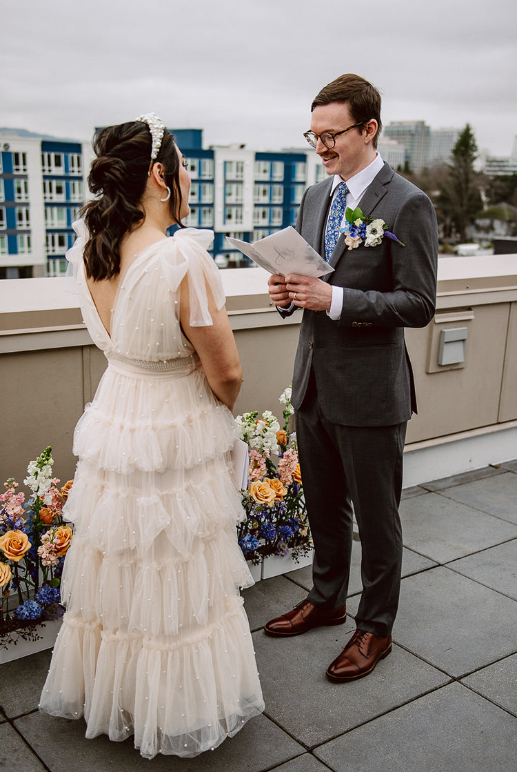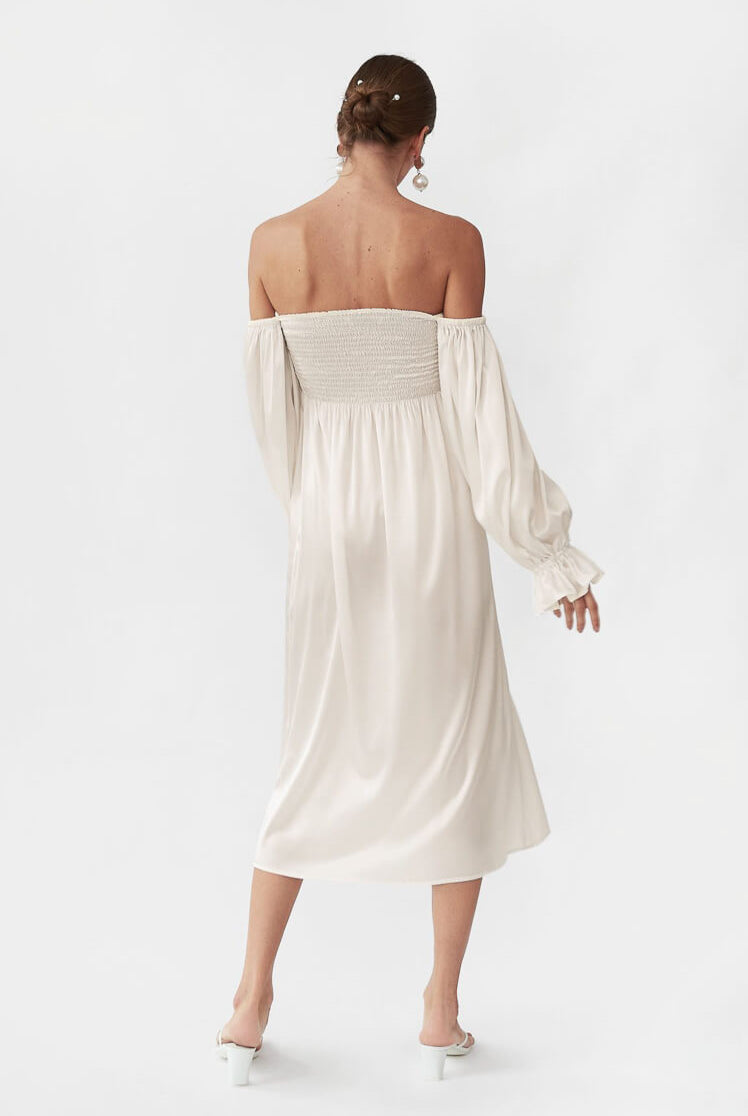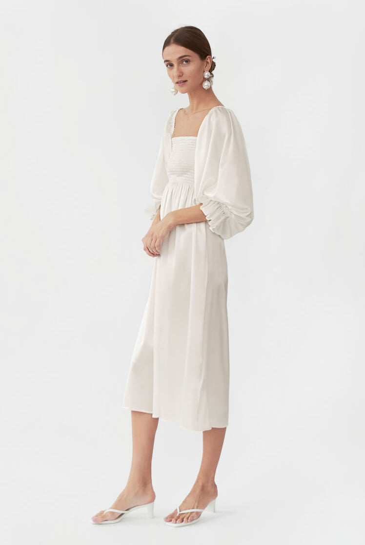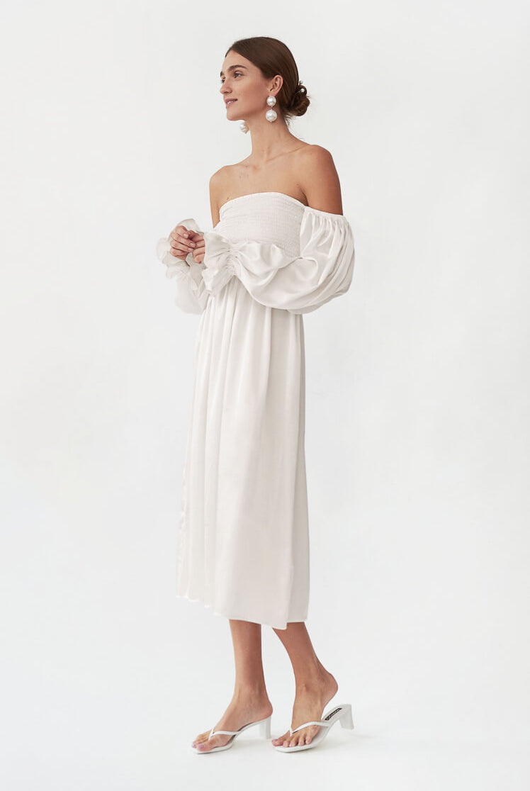 An elopement often means you can get married anywhere you want. We love dreaming of ceremonies and honeymoons held at National Parks, on a mountainside, or by the sea. Your destination should be about you, your partner, and the life you’re about to embark on together. No matter where you choose to have your elopement, we recommend selecting your elopement wedding dress to match the venue. You can channel ethereal vibes if you’re getting married near a forest, wear lots of tulle if you chose a vintage venue, or wear a sheath dress if your theme is more minimalist.