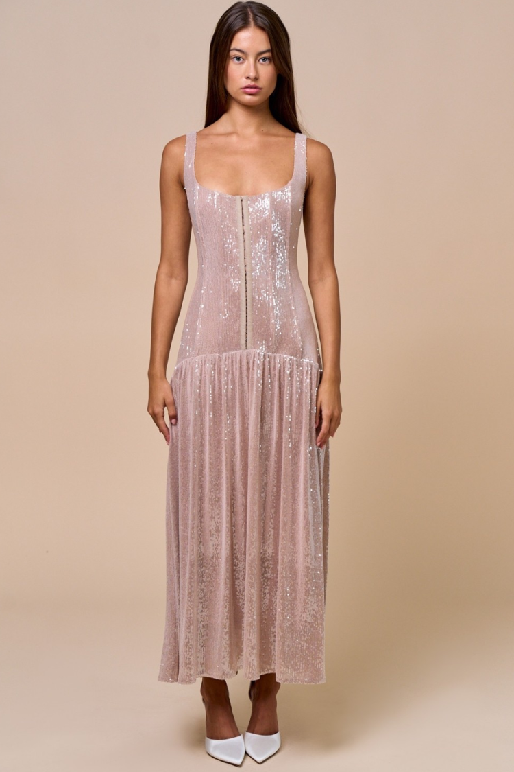Gwyneth Sequin Midi Dress - Nude/ Pale Pink