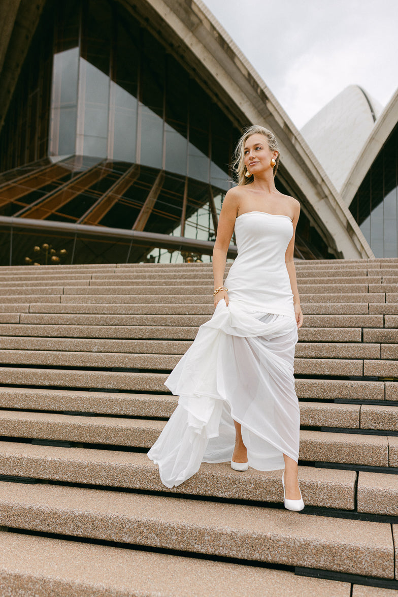 fitted bodice / strapless / sheer skirt / white maxi dress / floor length