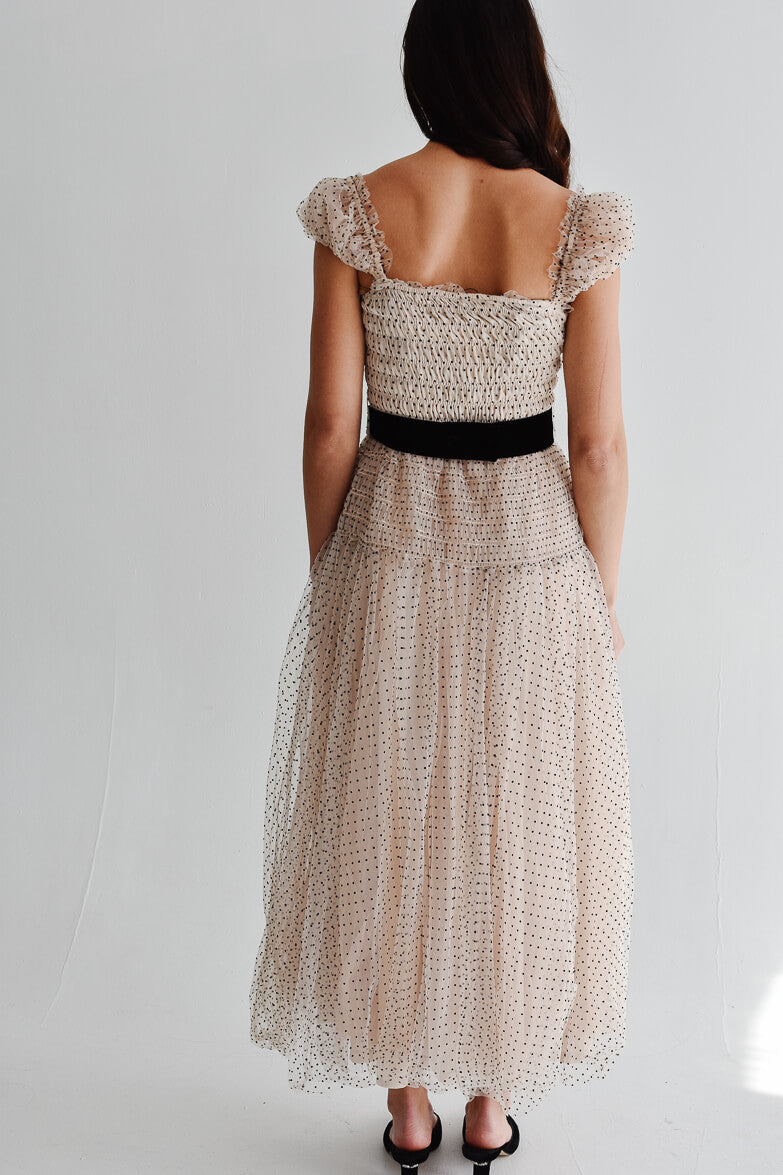 Juliette Polka Dot Mesh Maxi Dress