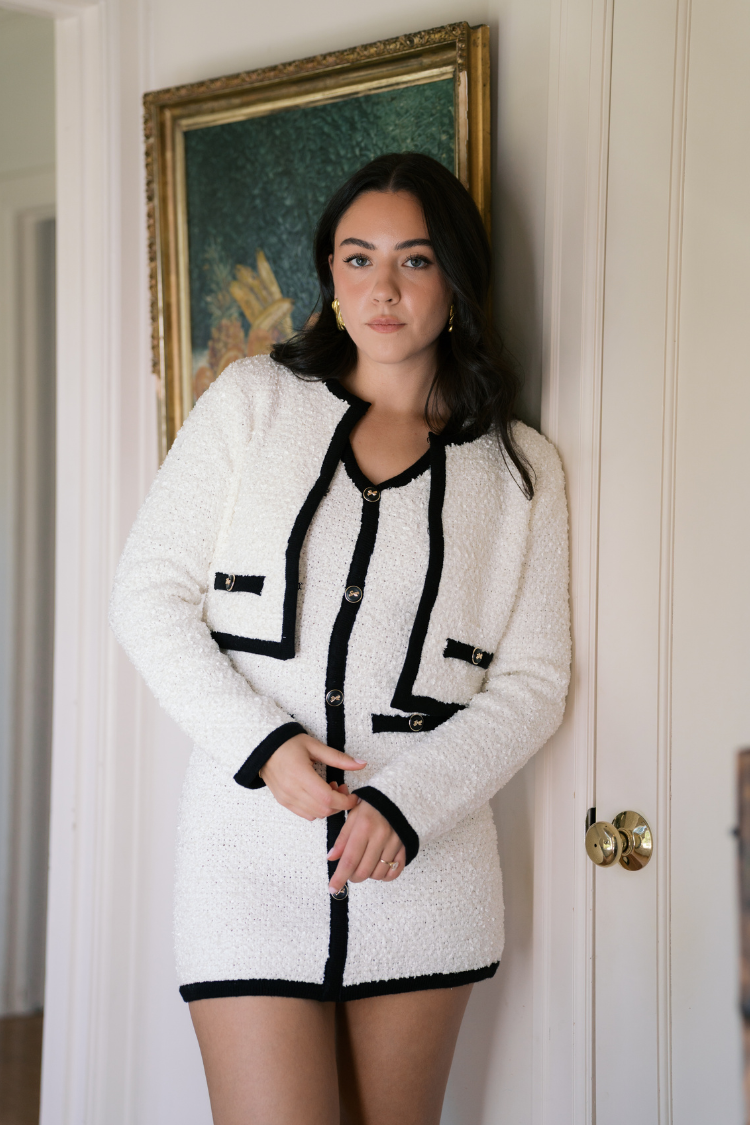 Bowery Dress and Jacket Set - Bouclé Knit Mini Dress and Cropped Jacket