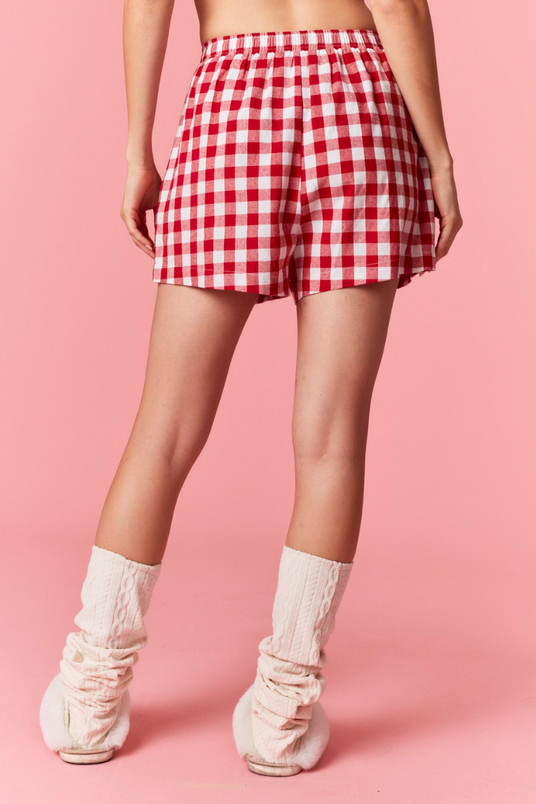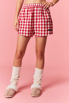 Pro styling tip: Mix textures by pairing the cotton checked shorts with a plush sweatshirt or fuzzy socks to elevate the cozy factor.
