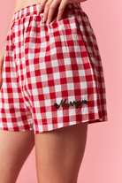 Red and White Checked Merry Pajama Shorts - Cotton Checked Pajama Shorts