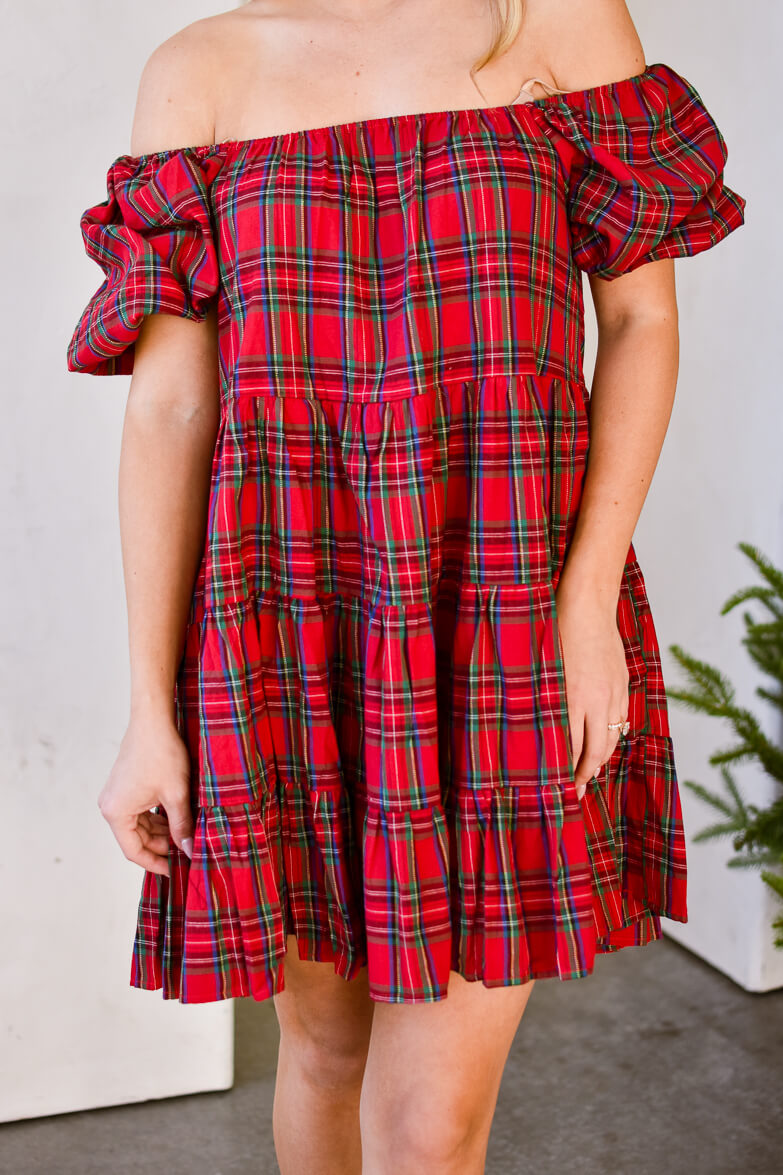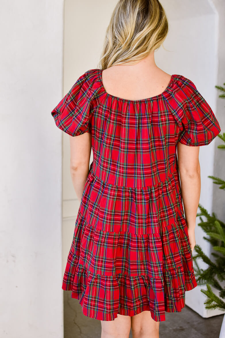 Embrace the holiday spirit in our Seasons Greetings Red Plaid Mini Dress. From picking out the Christmas tree to running errands, you won't be able to get enough of this timeless holiday classic! Featuring a soft square neckline, sweet puffed sleeves and a tiered skirt, this dress is perfect to wear to any holiday occasion with boots or kitten heels. Oversized babydoll fit.