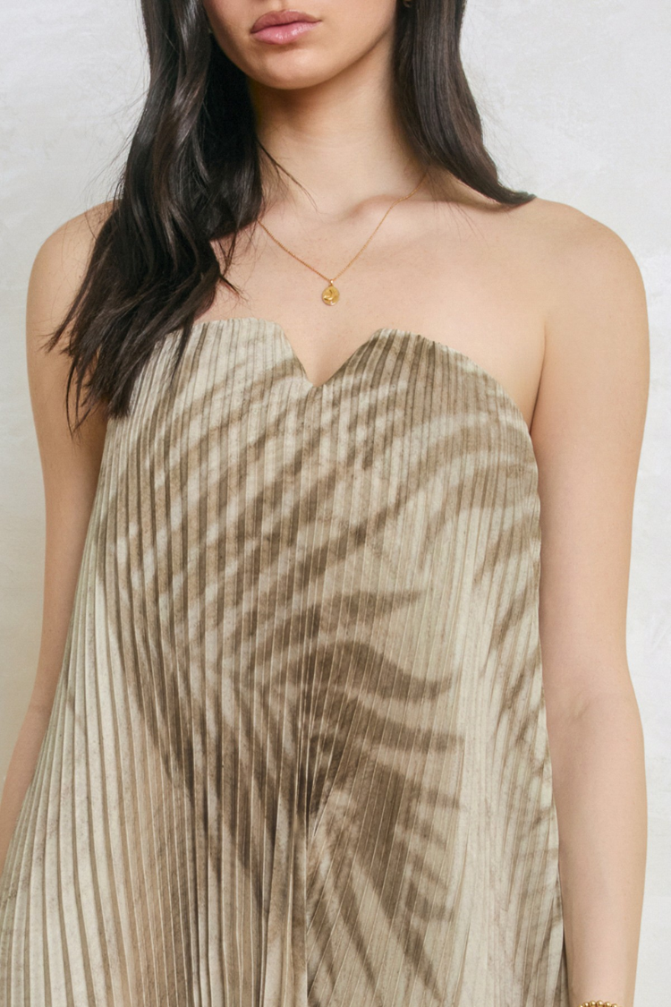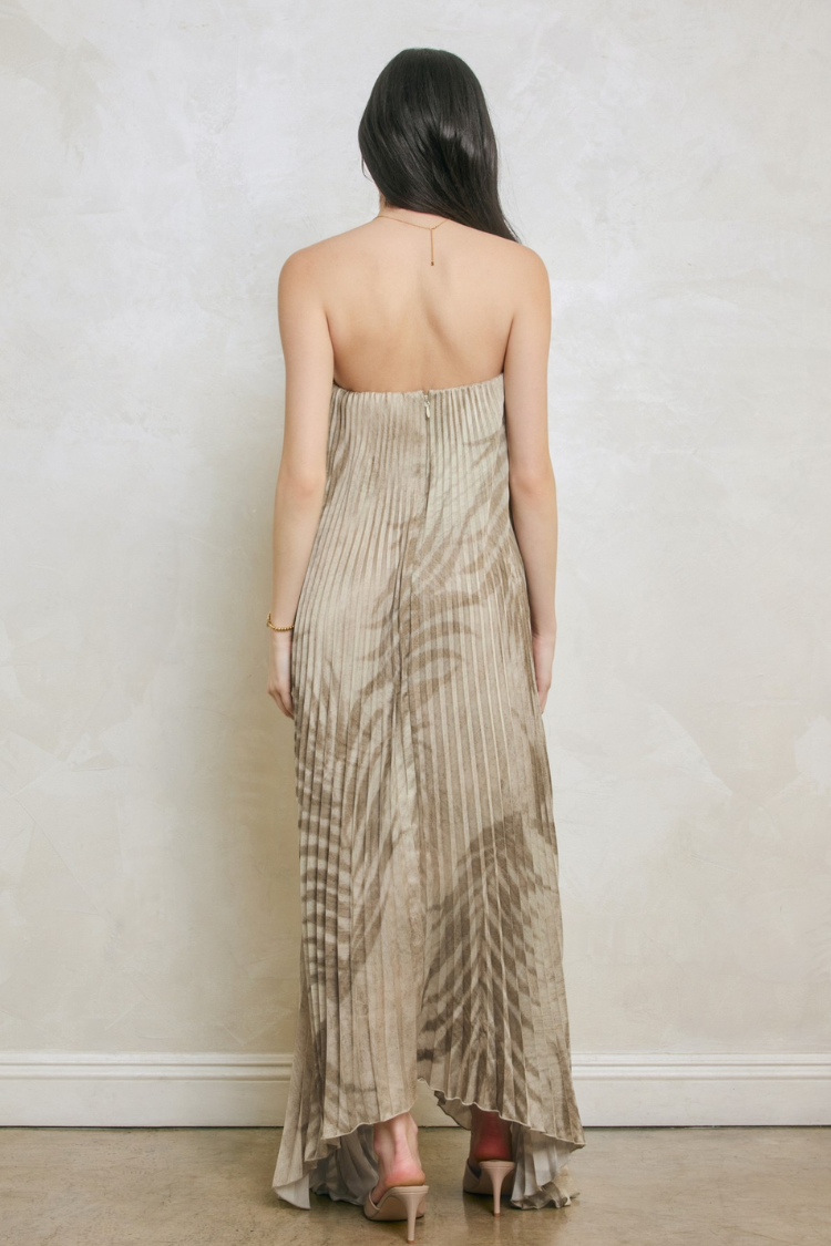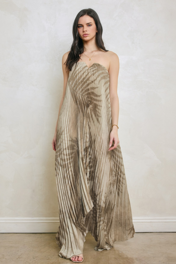 The Moonlit Pleated Maxi dress is perfect for women shopping for a wedding guest dress or any special occasion when you want to feel romantic and effortless. This strapless maxi is cut from floaty and airy palm print fabric that photographs beautifully, so you’ll feel confident walking into rehearsal dinners, destination weddings, or vacation nights out.
