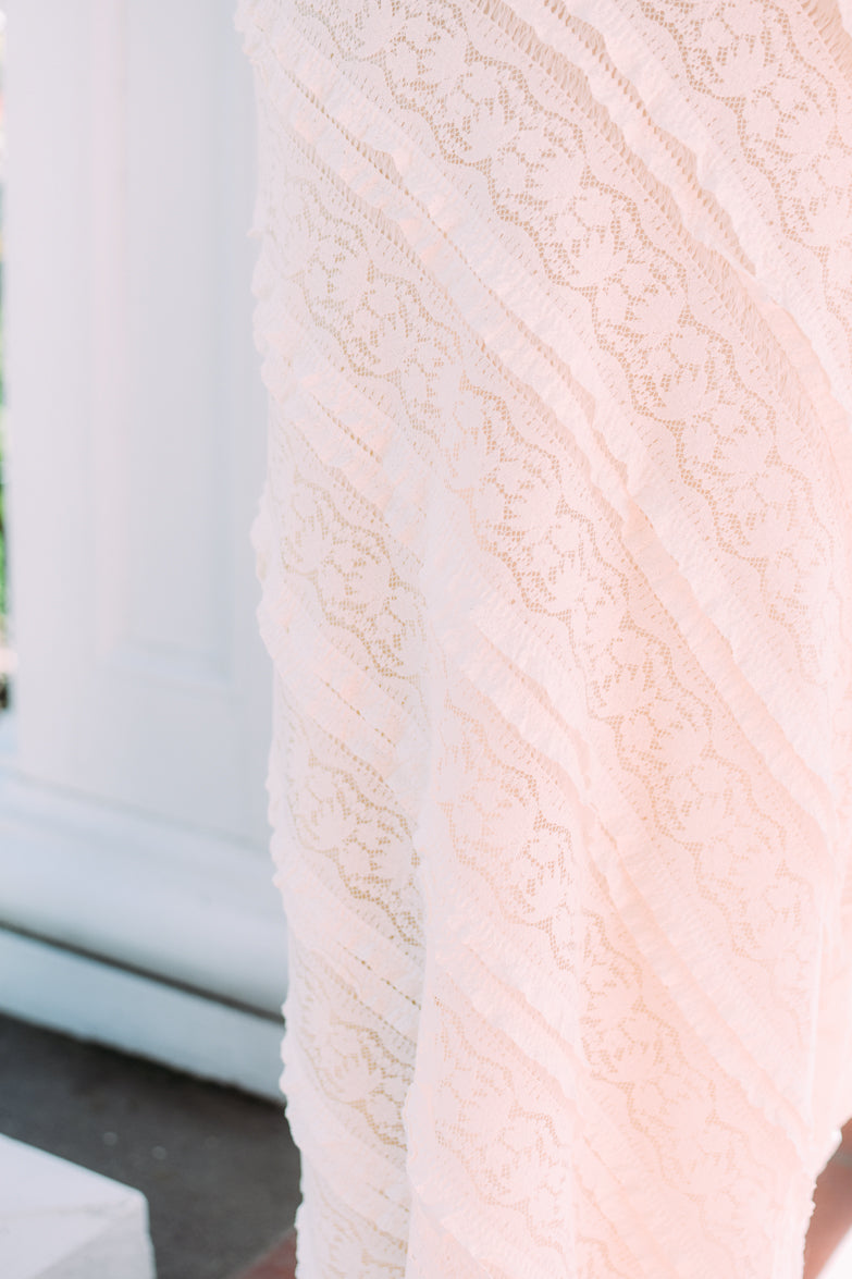 Allover lace with diagonal panel detailing