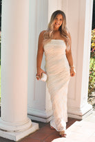 Perfect for bridal showers, rehearsal dinners, or a chic destination celebration, this gown feels both timeless and fresh—like something you’ll look back on forever.