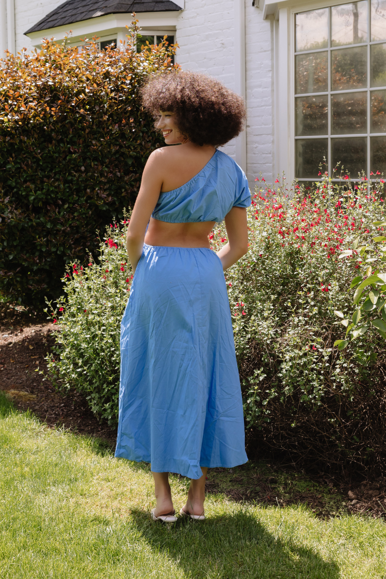 Naxos Blue One Shoulder Cut-Out Midi Dress