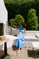 Channeling our next vacation abroad in the "Naxos Blue One Shoulder Cut-Out Midi Dress."  An of-the-moment update on a classic summer dress, this cobalt blue stunner features a flattering cutout around the waist and a one-shoulder neckline.  An elastic waist and bust help give you the perfect fit and allow you to show as much or as little skin as you want.  Pullover style.  Its lightweight cotton fabric makes this a great vacation or summer dinner date dress.