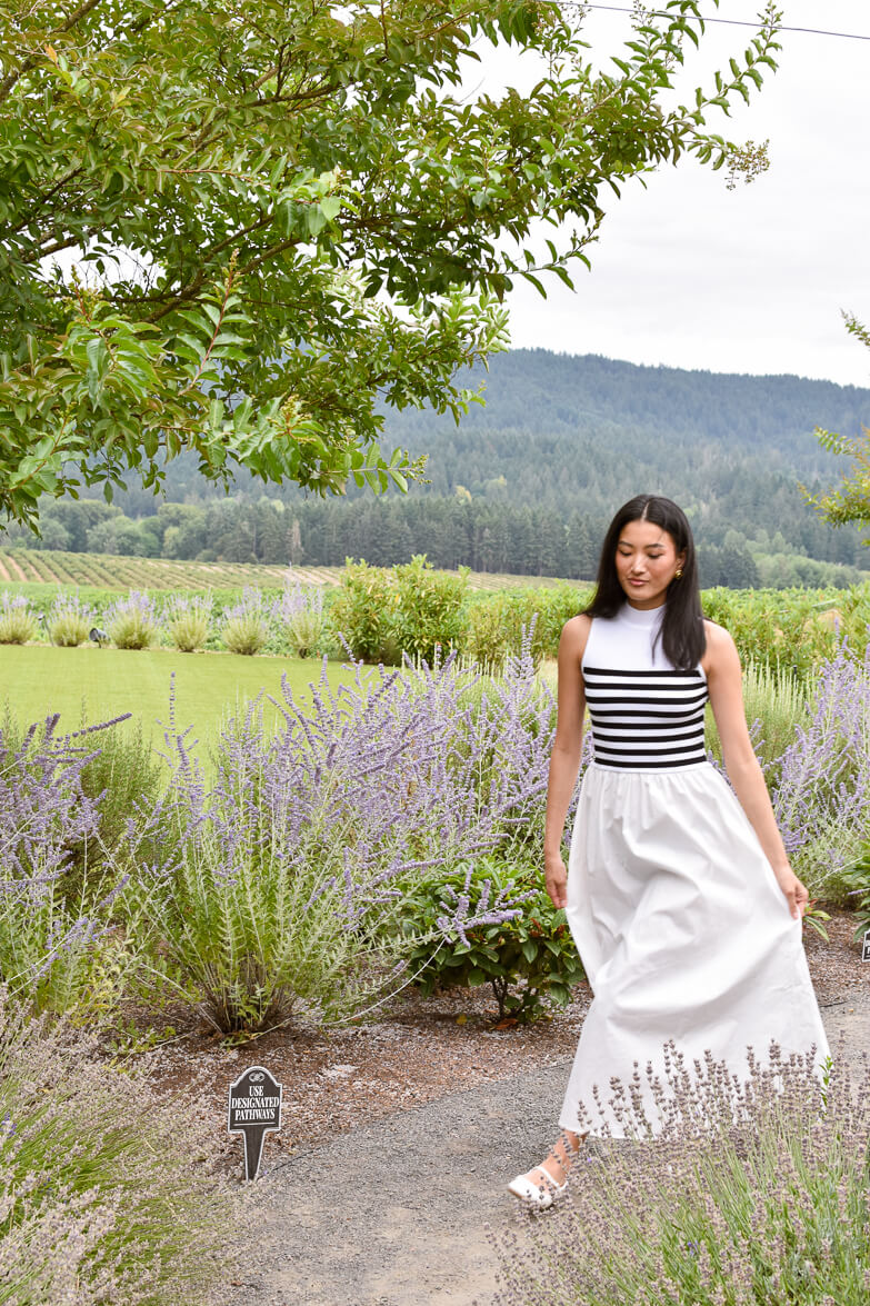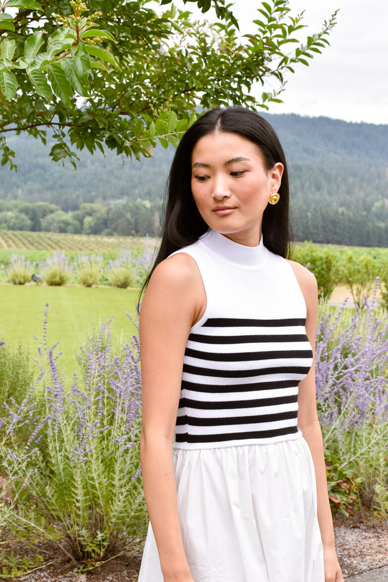 This is your new do-everything dress - from rocking it at work to drinks with your girls! The Allegra Knit Maxi Dress features a black and white striped knit sleeveless top and a white cotton poplin maxi skirt. Knit and waist are stretchy. Pullover style. Ankle length. Pair with ballet flats in warmer weather and black booties and a leather jacket when the temps dip!
