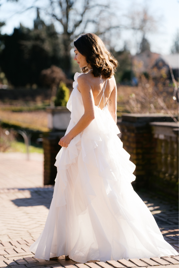 Designed with cascading tiered ruffles, this white bridal maxi dress creates beautiful movement with every step, giving you that effortless, floaty feel. The flowing silhouette feels light and airy, while the statement neckline detail adds a touch of elevated drama that photographs beautifully.