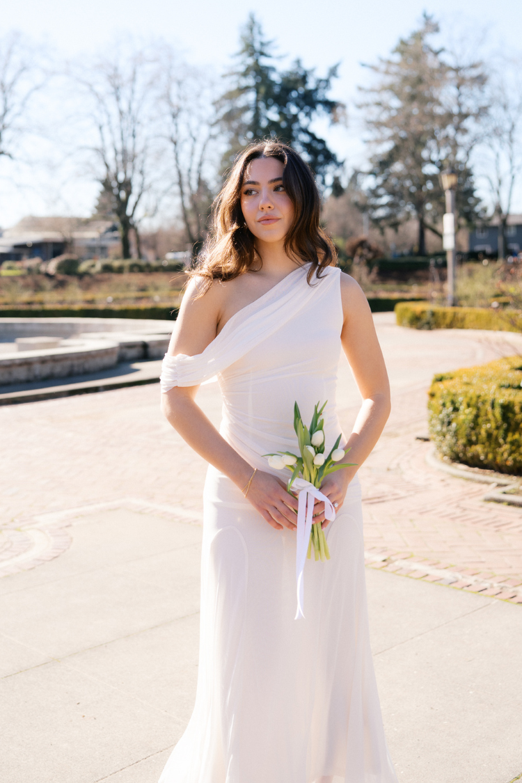 One-shoulder Grecian-inspired bridal gown