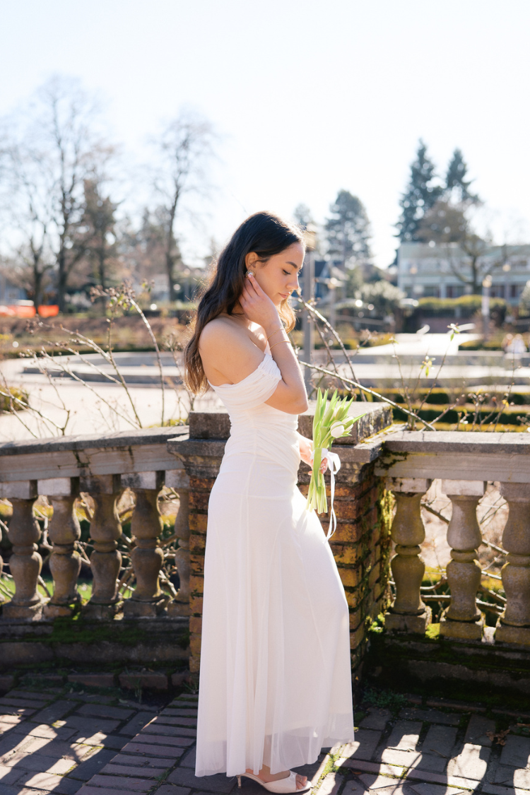The fitted bodice defines the waist, while the flowing maxi skirt moves beautifully with every step, offering an ethereal, elongated silhouette. Lightweight and fluid, this white draped gown is perfect for brides seeking a clean, elevated look for their special moments.