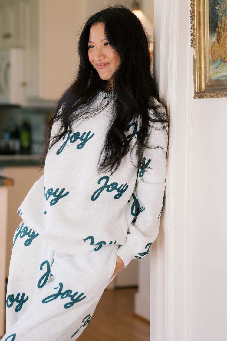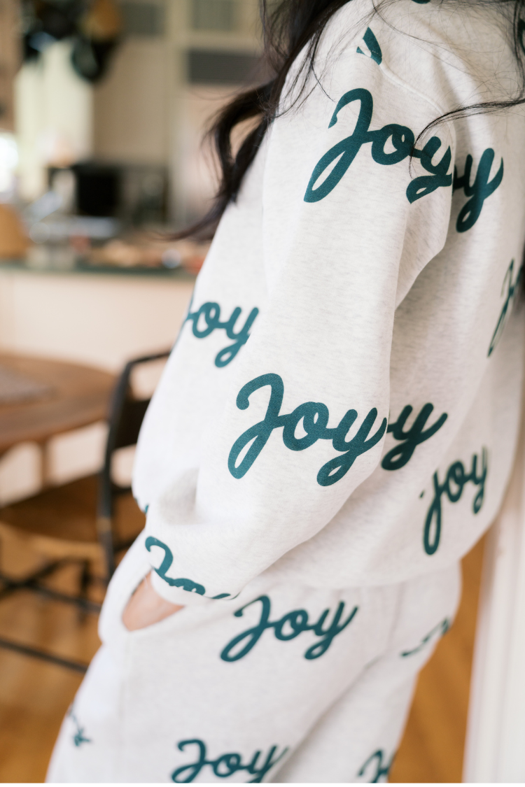 Perfect for anyone who wants a cozy holiday sweatshirt and sweatpants set to wear all over town - from running errands and cozy brunches to nights in. The Joy Jogger Set gives you a soft, put-together look that reads comfortable and festive without trying too hard.
