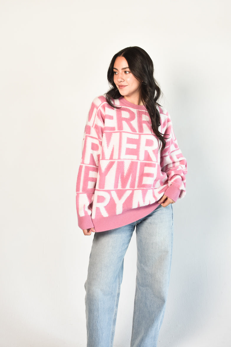 Pink Merry Pullover Sweater - Holiday Pullover Sweater