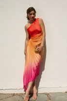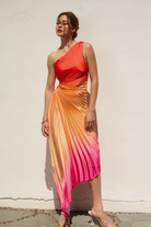Olympia Pink Ombre Pleated One Shoulder Gown - Hibiscus Cosmo