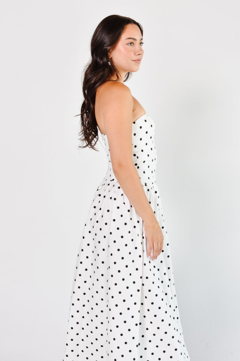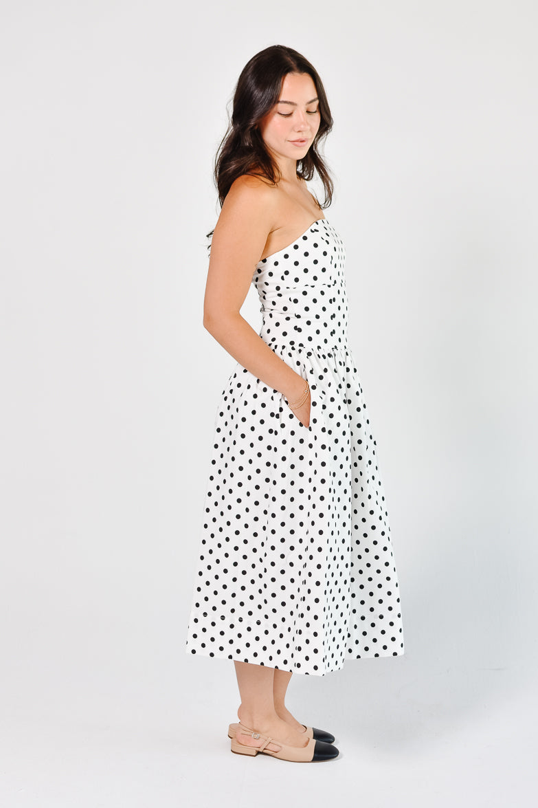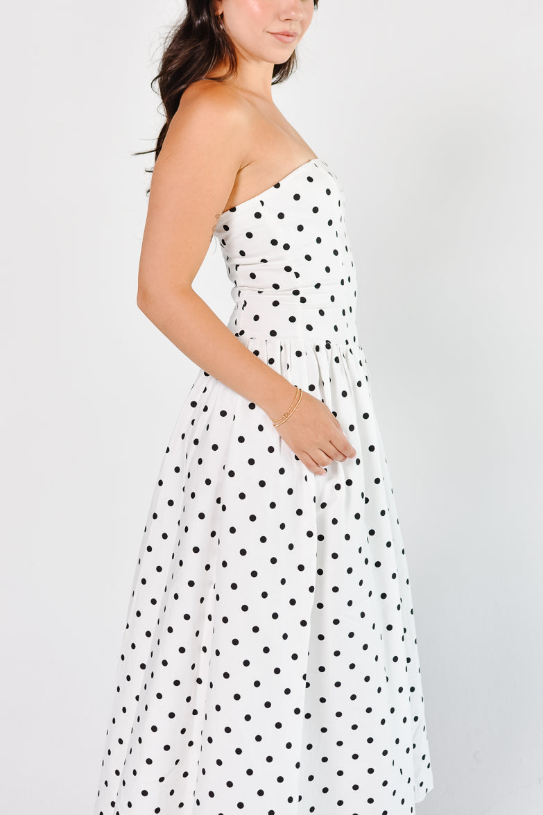 Marne Polka Dot Strapless Midi Dress