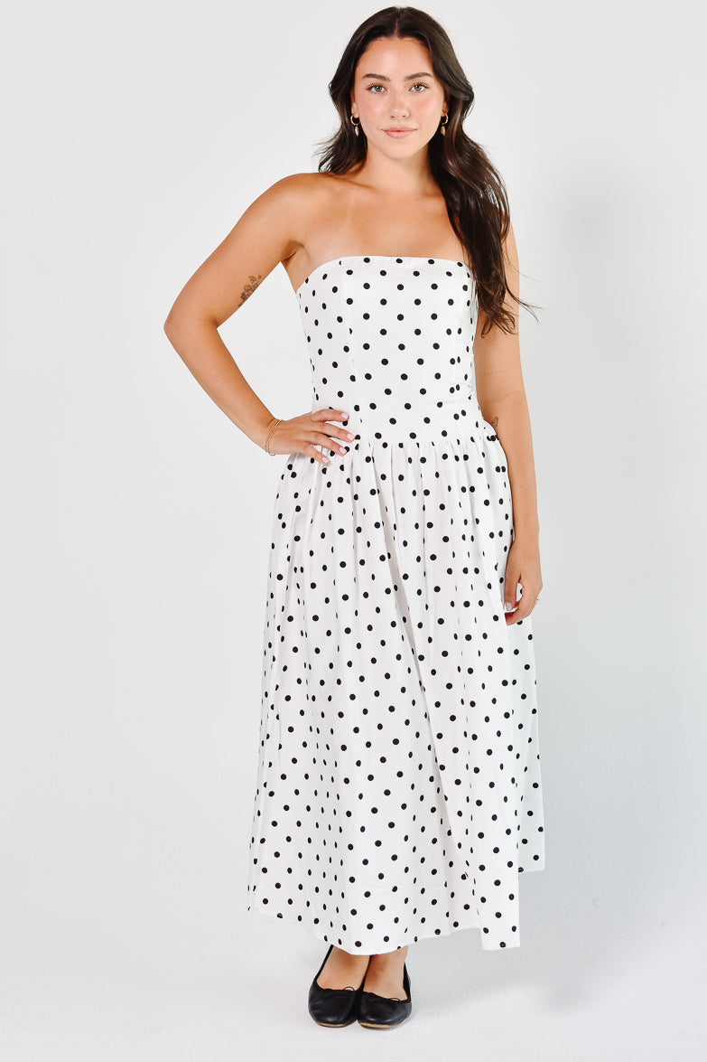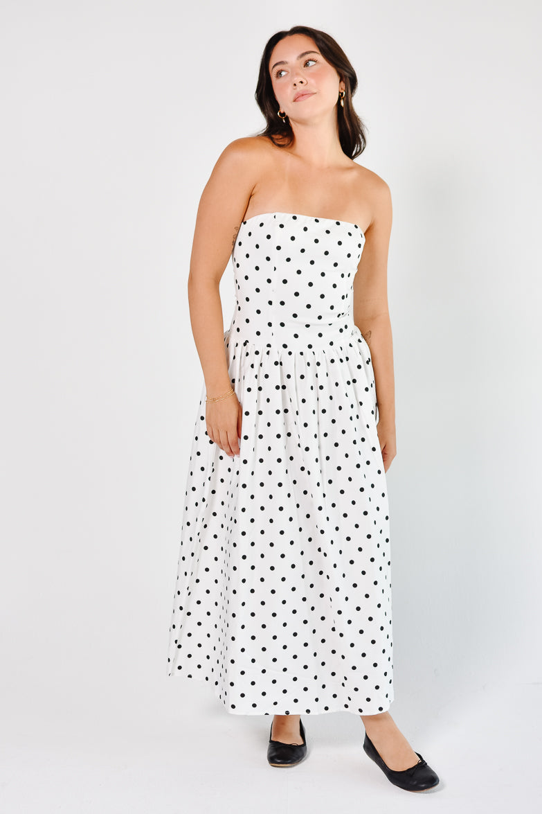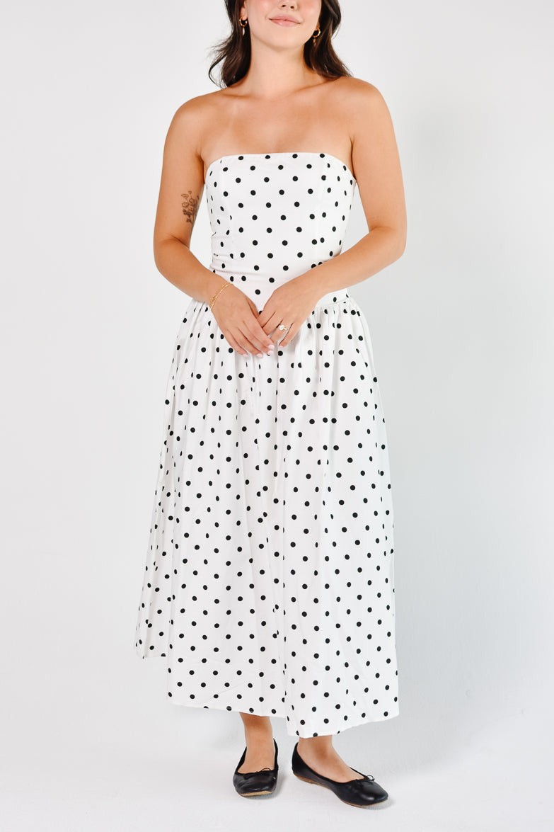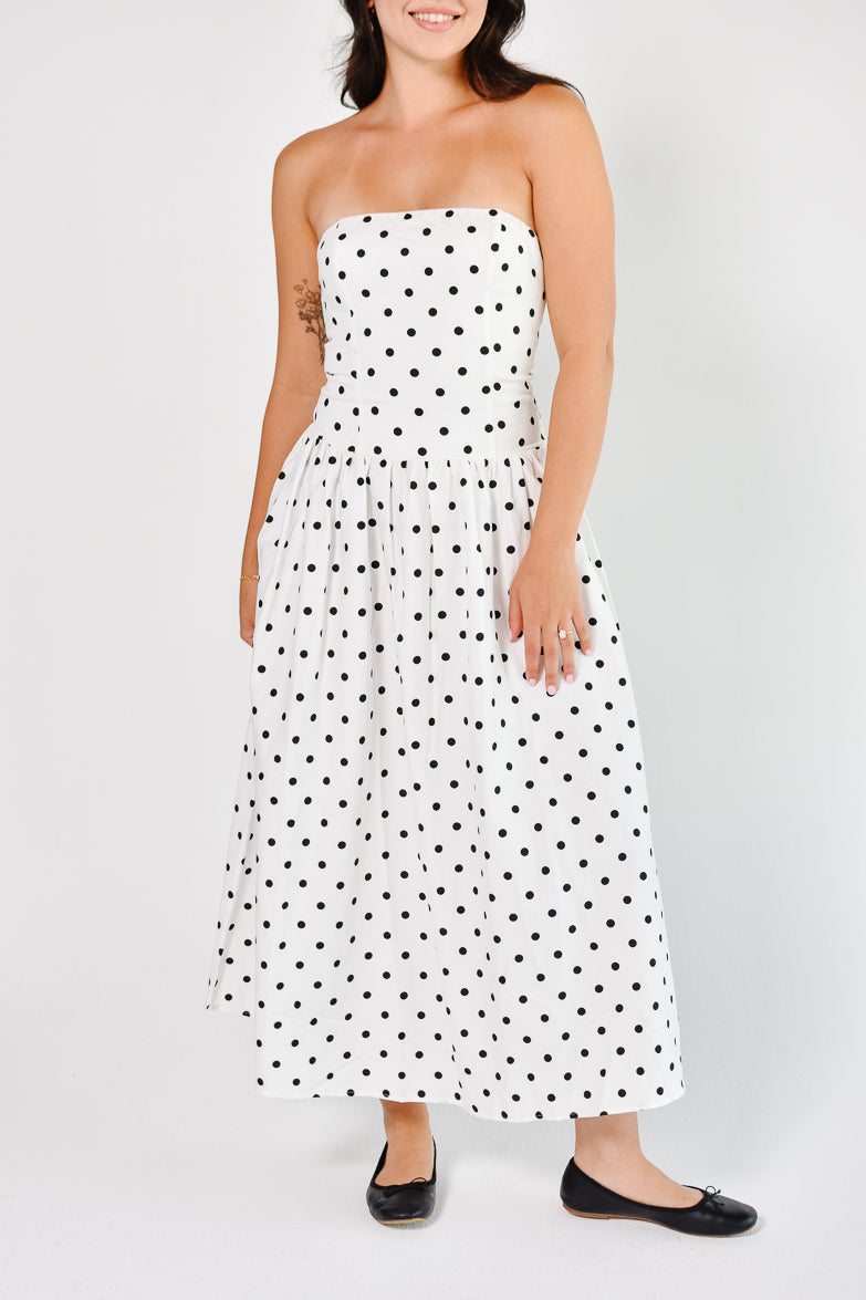 Marne Polka Dot Strapless Midi Dress
