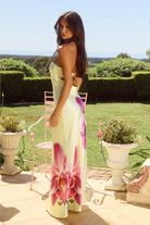 The Celeste Yellow Orchid Maxi Dress from Runaway the Label is the picture of elegance, in an ethereal yellow hue with orchid placement print. It’s the perfect piece for a wedding or a tropical vacation. Lined.