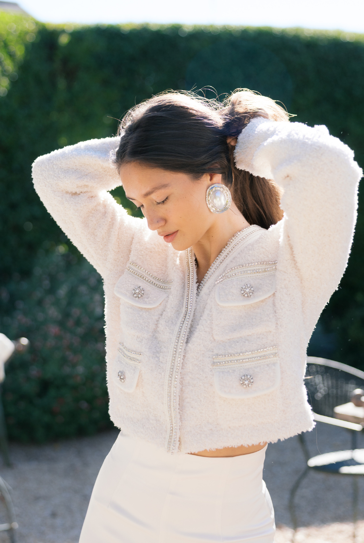 These stunners bring a modern twist to a classic look with its imitation pearl in a hammered silver setting.