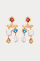 A statement earring adds a bit of fun to any outfit, and the Cascais Earrings from Petit Moments are your summer must-have! Available in the Sunrise color way, this statement earring features multi-colored crystals and faux-pearls set in a hammered gold-tone backing. These drops are made for anyone looking to give off classic and cool vibes. Post-back closure.