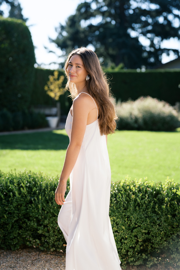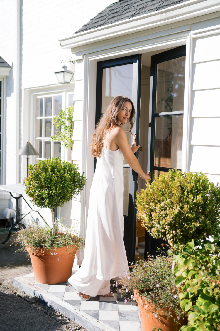 Designed for the bride who loves clean lines and effortless sophistication, The Jordan Bridal Set from Line & Dot is a chic two-piece look that redefines bridal style. This set features silky wide-leg pants paired with a long, flowing vest that moves beautifully with every step.