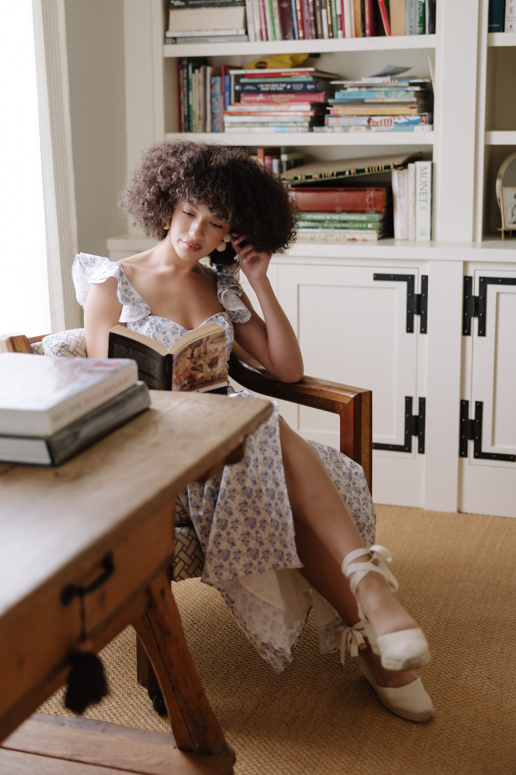 If you're looking for the ultimate European summer dress, try our Parisian Bloom Corset Midi Dress. This classic wardrobe piece features a luxe blue and white floral print fabric and a bustier-style bodice with sweetheart neckline. The shoulder ruffles are feminine and flirty, while the midi length is just right for summer brides and a bridal brunch or European summer night out. Pair with wedges or slides for a show-stopping outfit that's sure to turn heads!